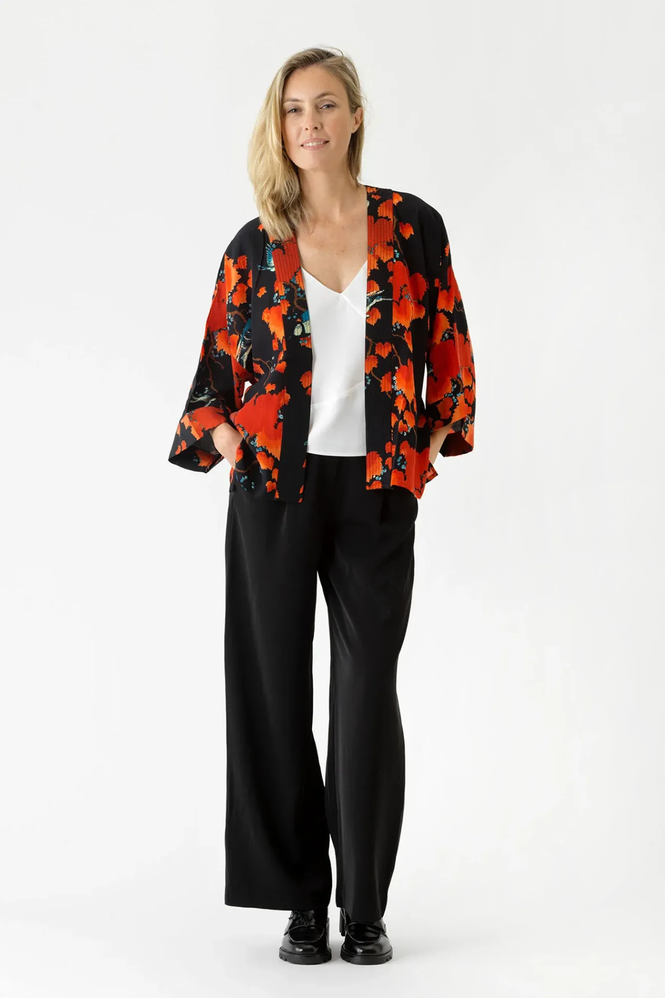 Our Bestselling Kimono Jackets Have Loose ¾ Length Sleeves, An Open Front And A Lightly Embroidered Lapel. The Crepe Kimono Is A Heavier Weight Than Our Classic Kimono . Pair With A Matching Camisole And Your Favourite Jeans In Summer Or Layer Over A Polo Neck During The Cooler Months.
