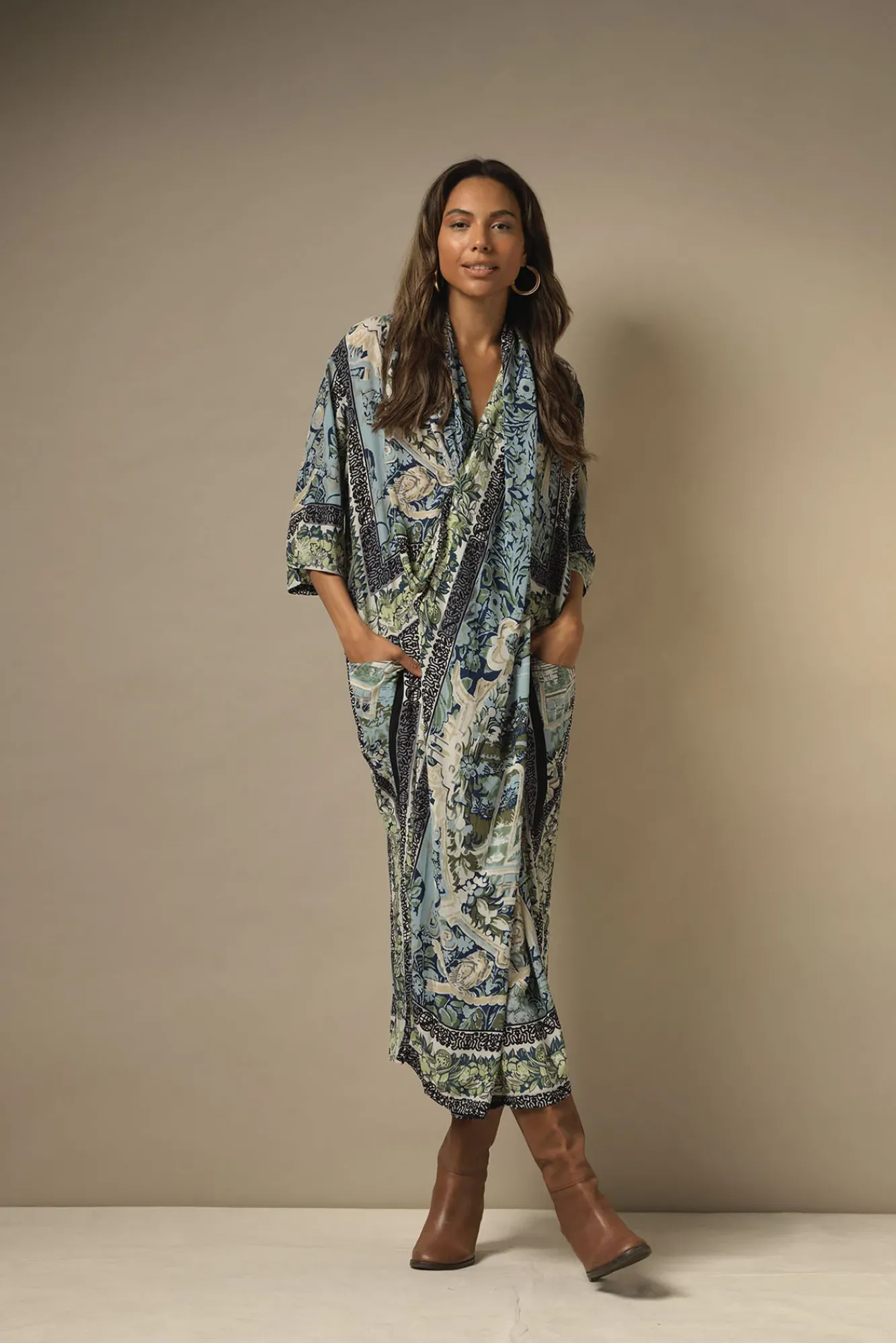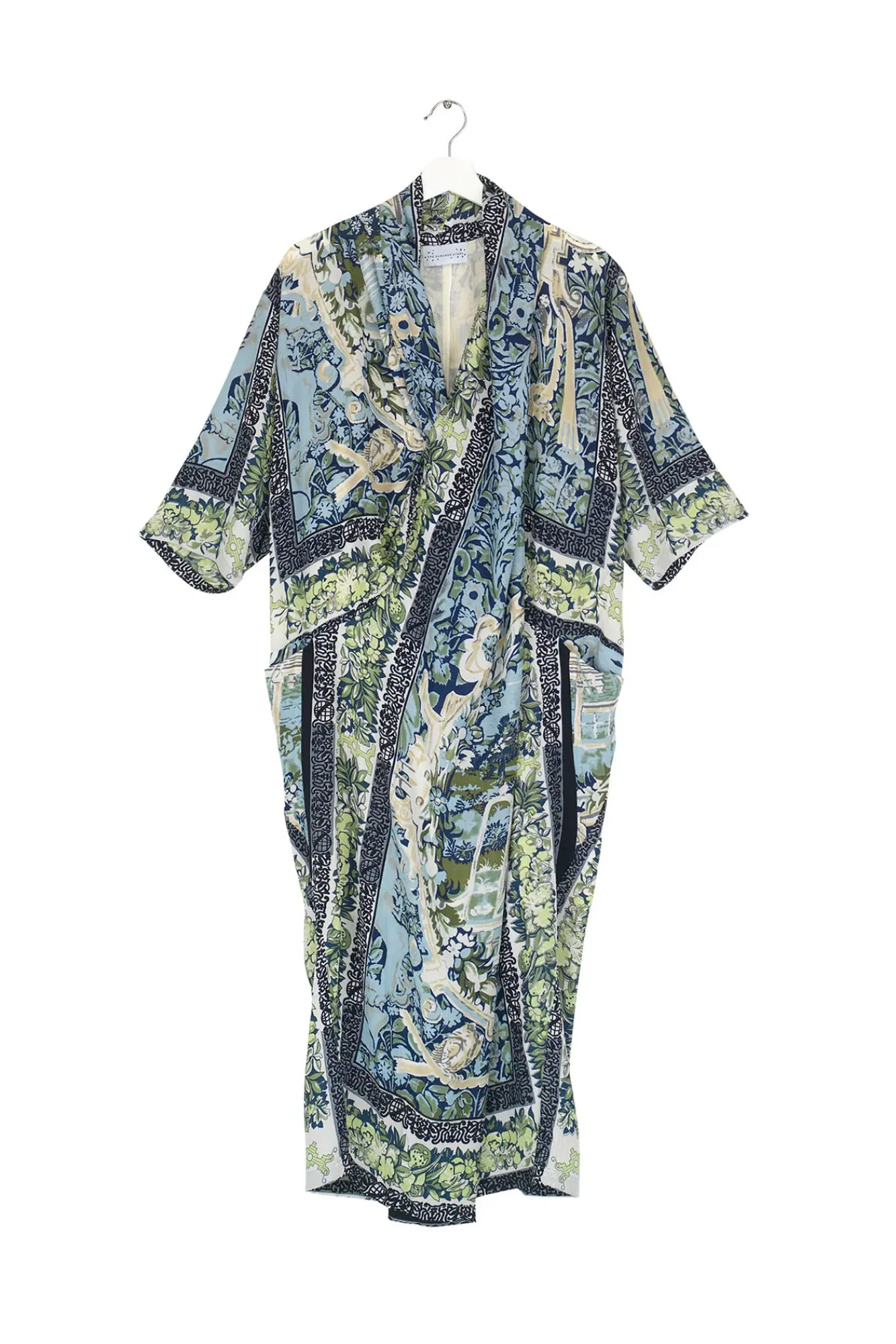 Inspired By Antique Flemish Tapestries, This Print Features Beautiful Garden Scenes In Sea Greens And Blues.