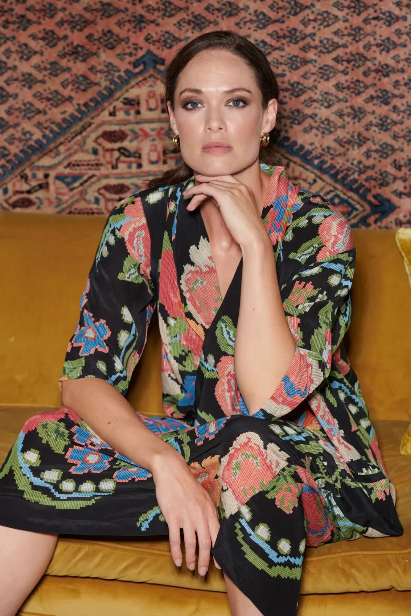 This Woven Floral Print Cleverly Mixes Traditional Crafts And Modern Techniques To Create A Graphic Pixel-Style Print With A Cool Vintage Air To It.