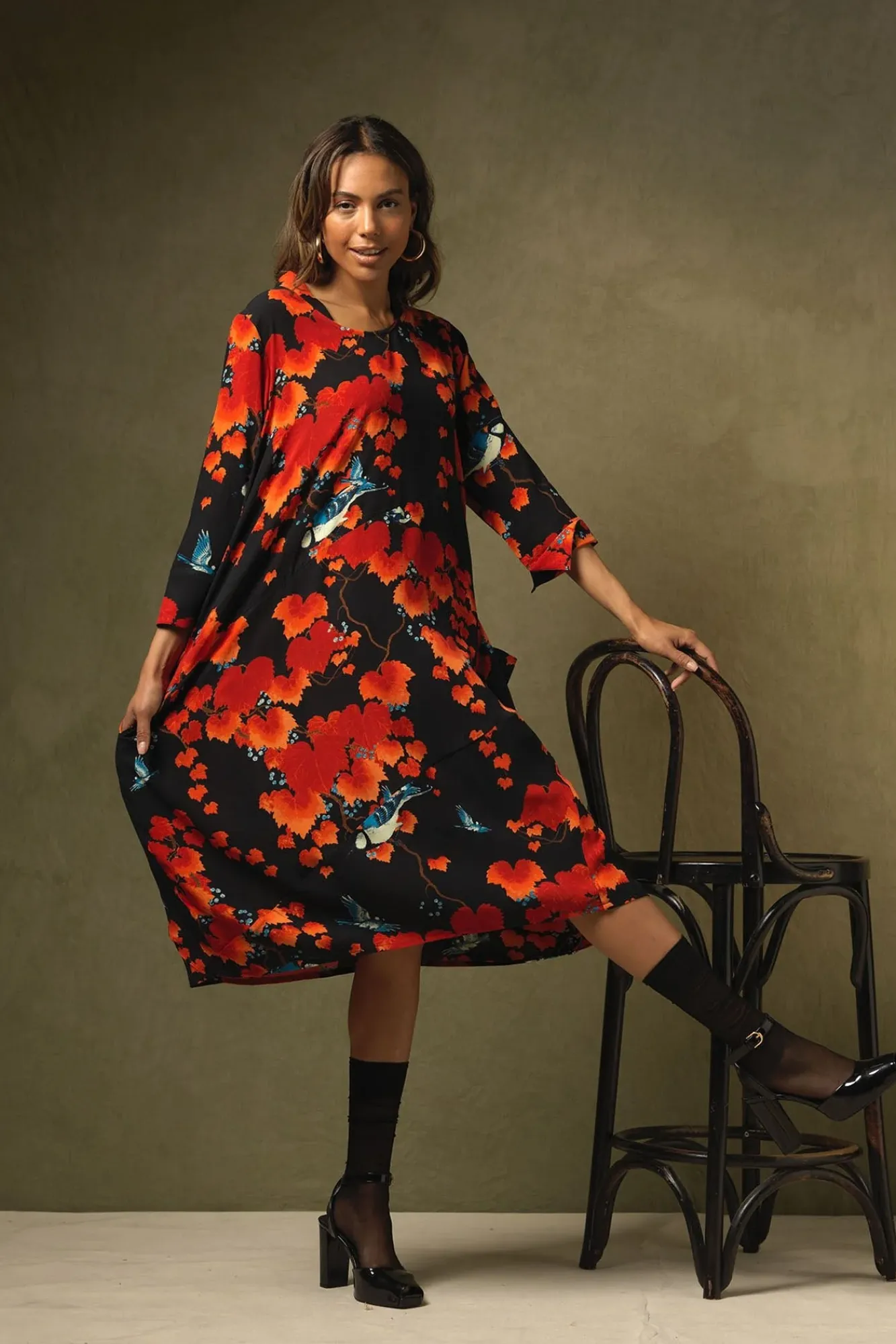 This 3/4 Length Dress Is Cut To Hang Asymmetrically, Has A Delicately Detailed Collar And Two Handy Pockets, One On The Front And Another Hidden Within The Side Seam.