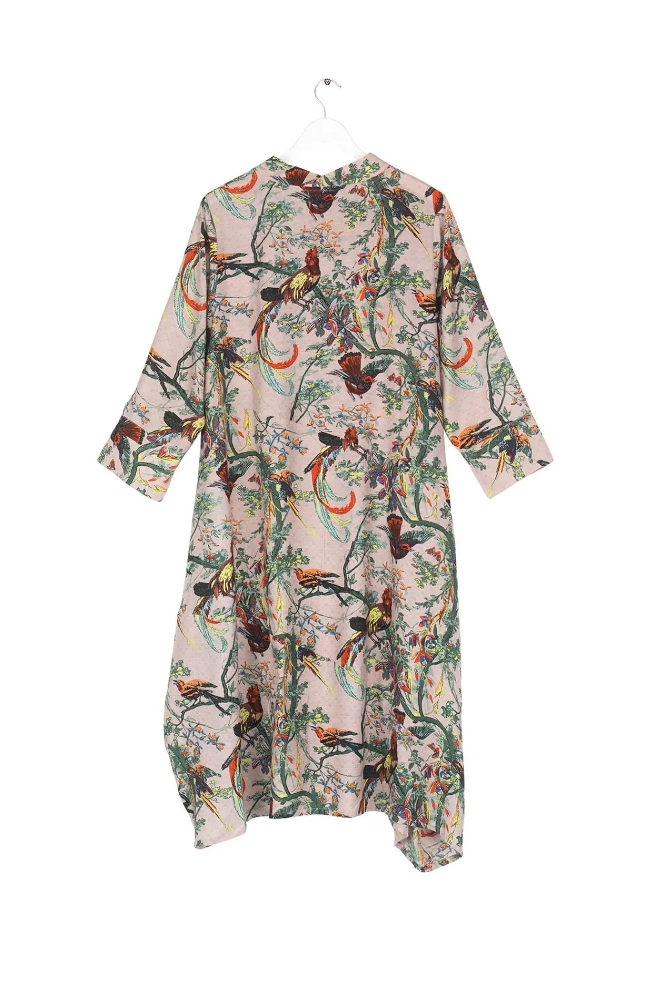This 3/4 Length Dress Is Cut To Hang Asymmetrically, Has A Delicately Detailed Collar And Two Handy Pockets, One On The Front And Another Hidden Within The Side Seam.