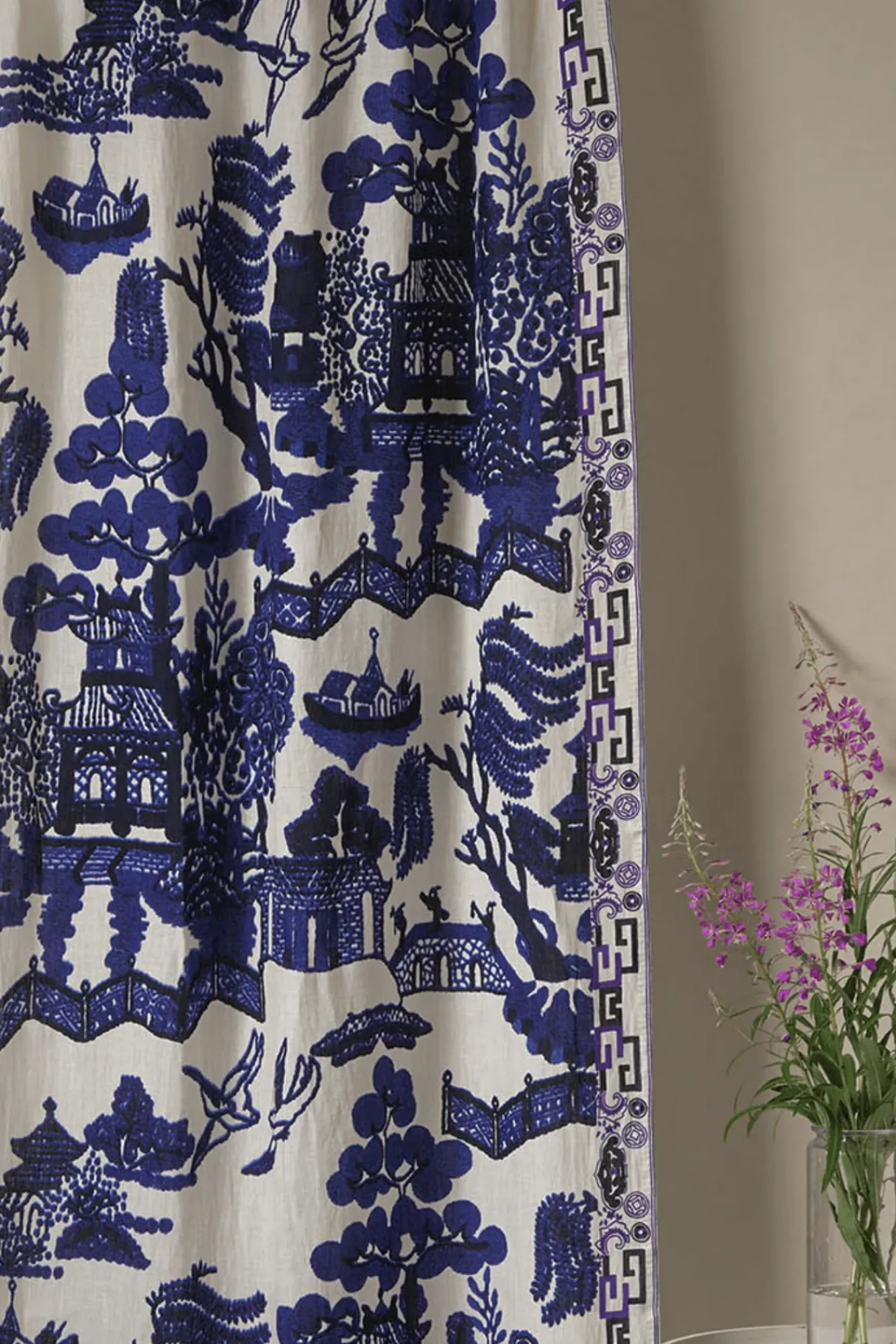One Hundred Stars Giant Willow Panel In Blue Features The Classic Blue And White Willow Print Which Can Often Be Found Adorning Vintage Pottery.
