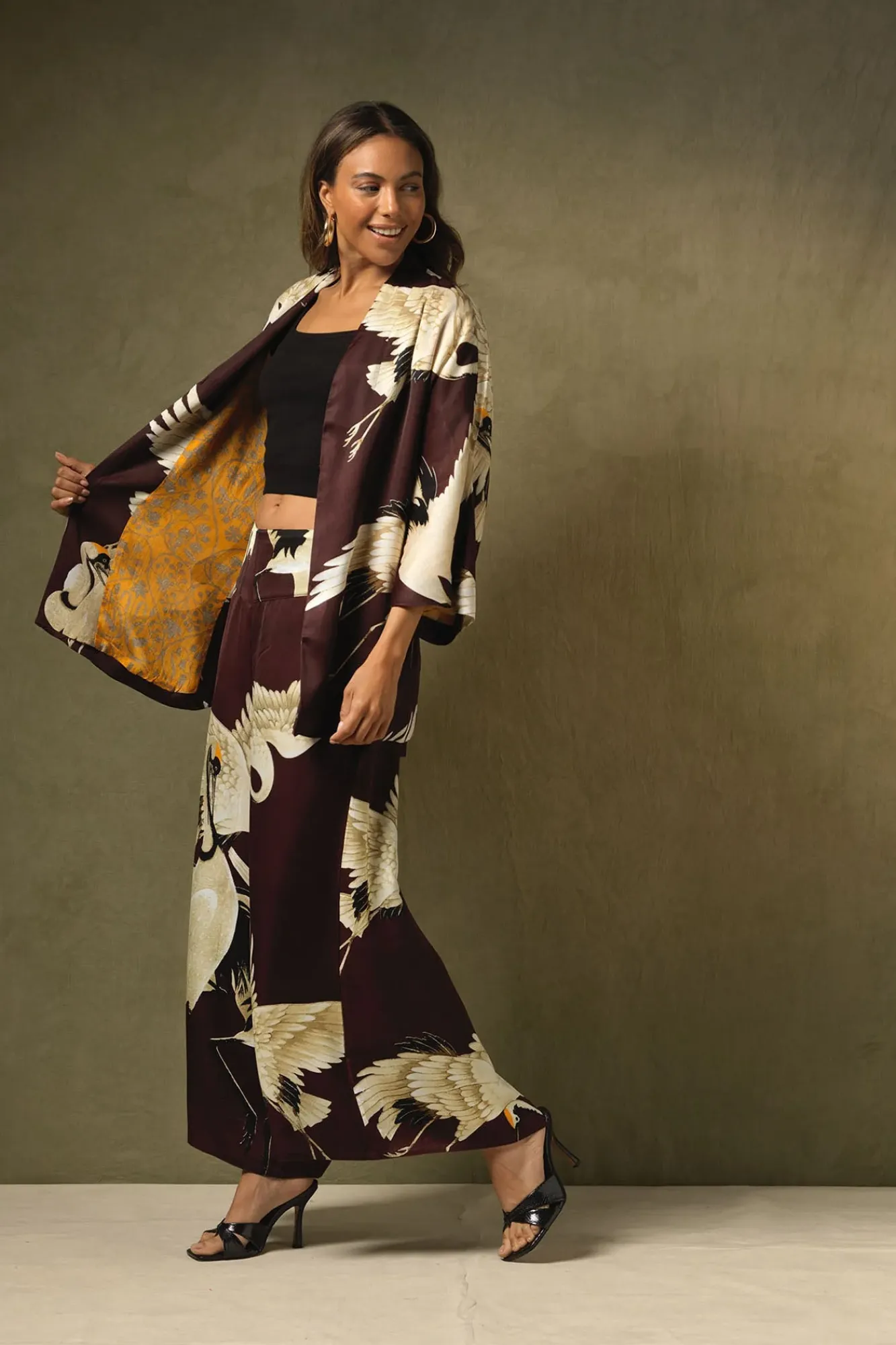 Storks And Cranes Have Been A Major Art Deco Trend In Both Fashion And Interiors And This Stork Burgundy Wrap Jacket Is Perfect For Anyone Looking For Something Chic, Stylish And In Vogue!