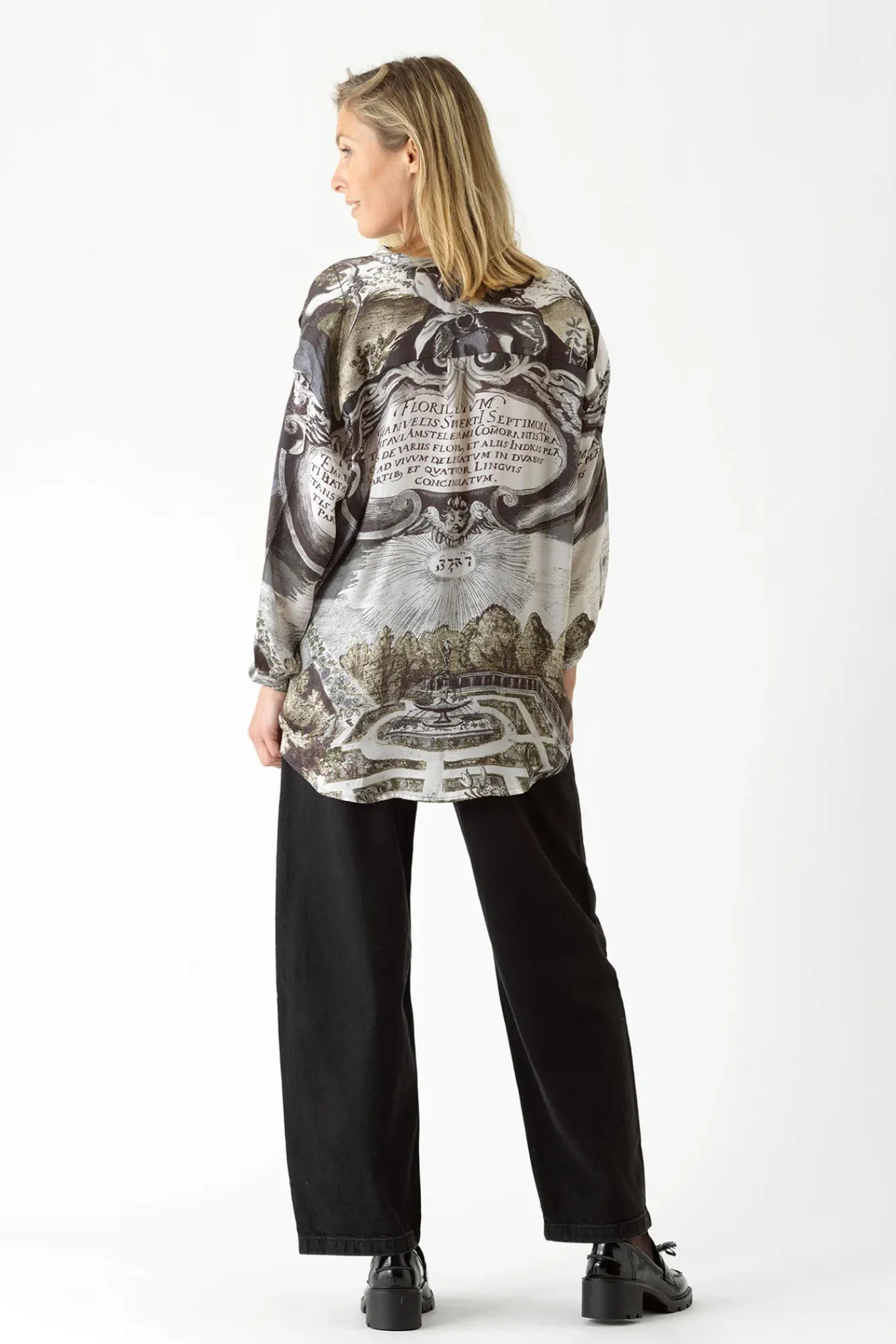 This Scenic Print Features Gardens And Sculptures Inspired By The Palace Of Versailles And Louis Xiv – The Sun King. Carefully Coloured In Tones Of Black, Grey And Subtle Green, Sunburst Is Perfect For Anyone Looking For A Slightly More Edgy Print Within Our Autumn Winter Collection.